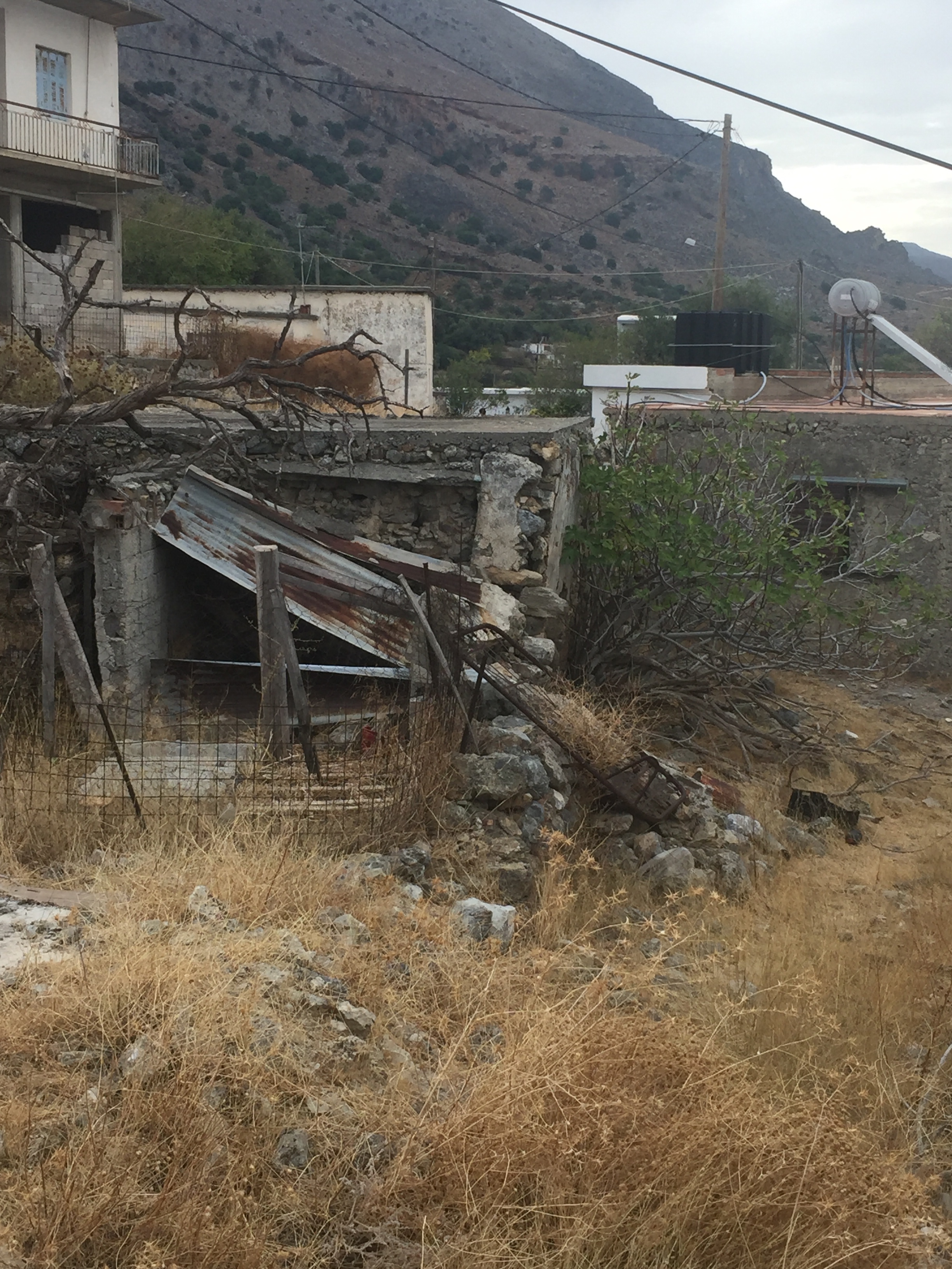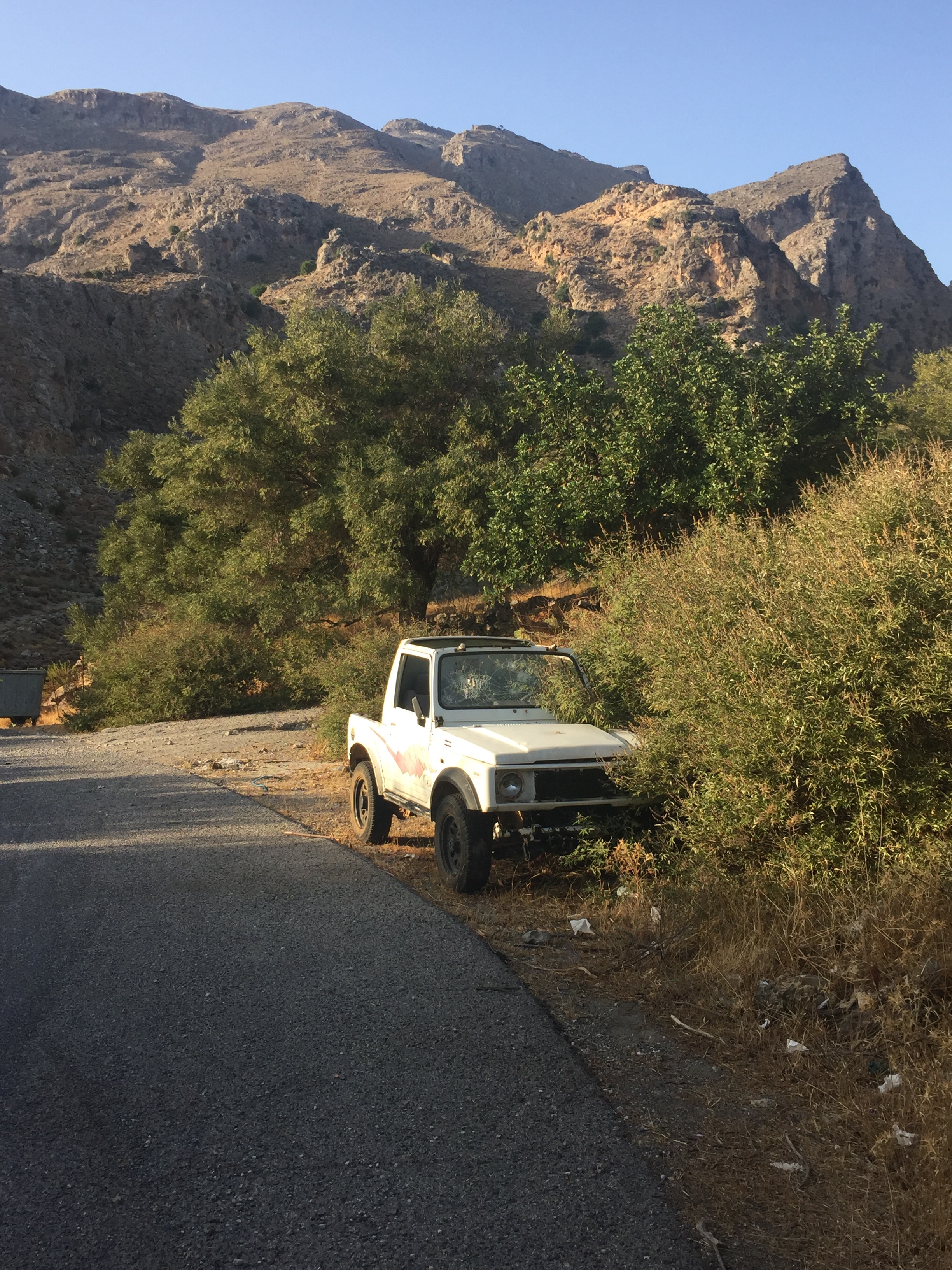 We had a sofa and an abandoned jeep welcoming us into the upper level of the village late last year. The sofa decomposed quickly. Put to use in someone’s fireplace one winter’s day I’m thinking. Cars? They’re everywhere, stripped of their number plates and gently rusting into the verges.